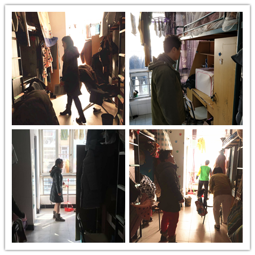 在学生公寓楼里,检查小组逐层逐楼进行检查,仔细排查寝室中的安全隐患、违纪用电和寝室卫生文明等情况。对寝室有学生在的,发现问题立即指出,要求整改。对没有学生在的进行仔细记录,及时汇总通报到学生。对能够整改的立即动手帮助处理,并加以教育。