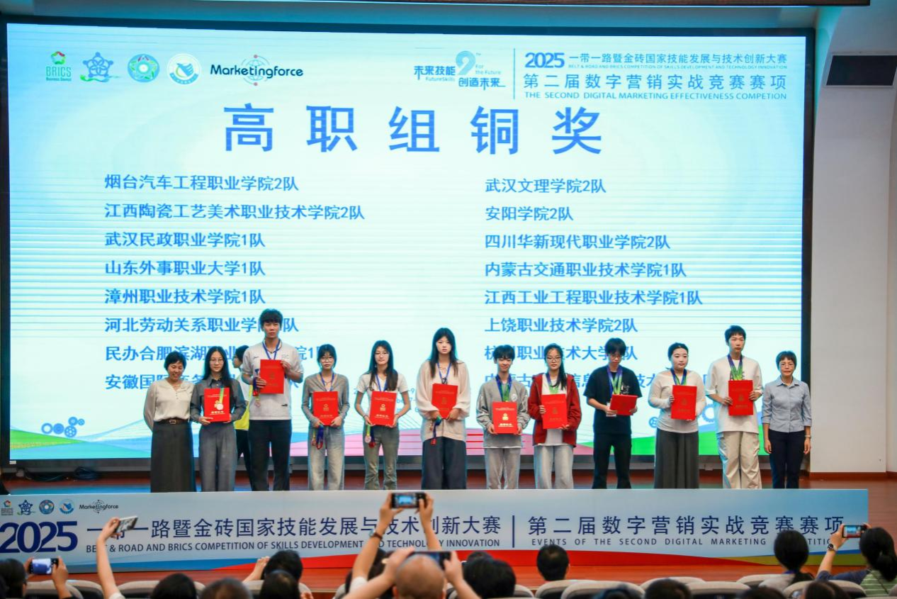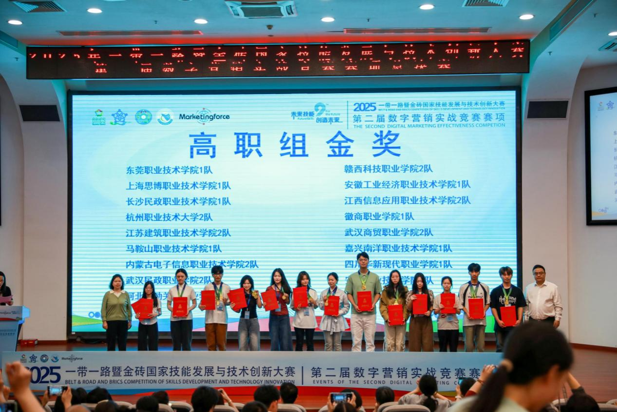 11月9日,2025一带一路暨金砖国家技能发展与技术创新大赛第二届数字营销实战竞赛全国总决赛顺利收官。我校商贸旅游学院两支参赛队伍凭借过硬的专业素养、默契的团队协作与娴熟的数字营销实操能力,在全国众多参赛队伍中崭露头角,成功拿下全国金奖与铜奖,彰显了学校在数智化营销人才培养领域的扎实成果。