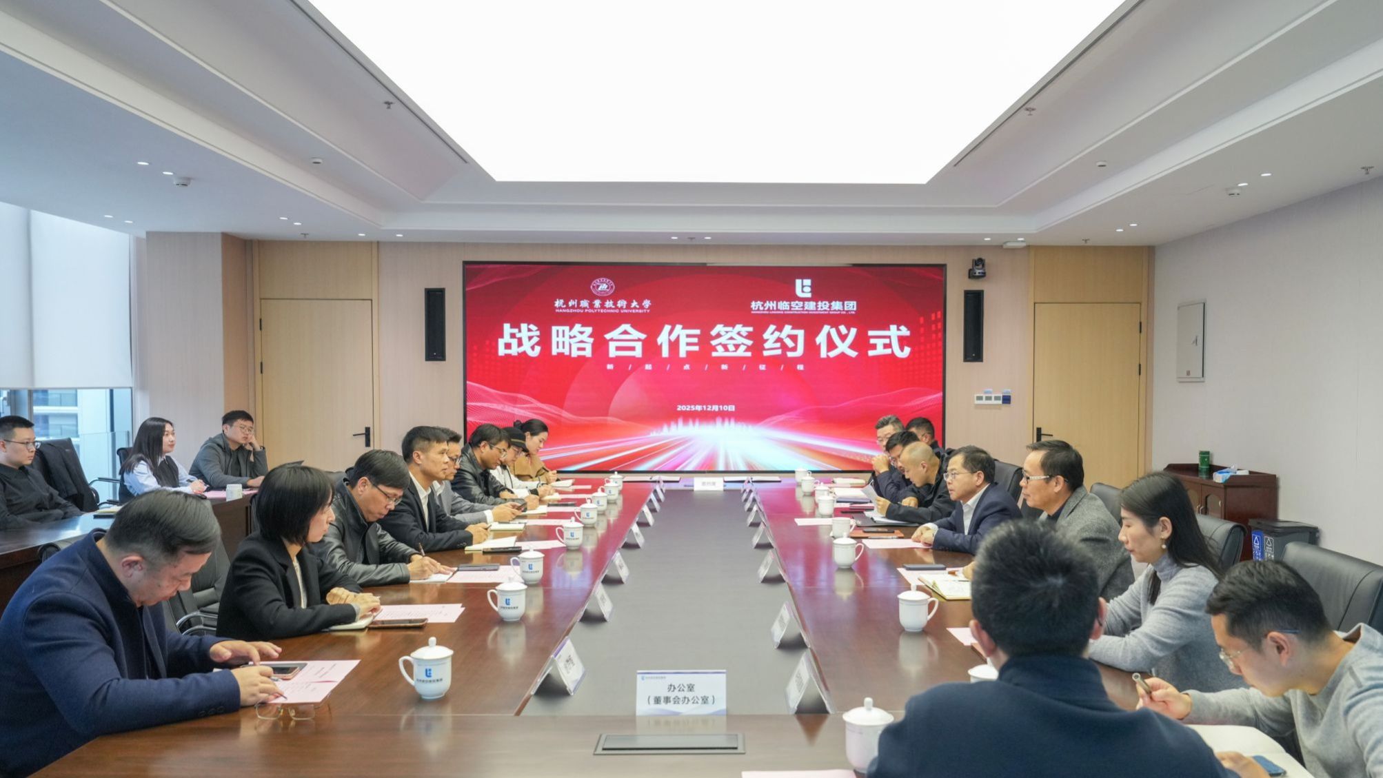 为深入贯彻国家产教融合战略部署,服务临空经济示范区高质量发展,12月10日下午,杭州职业技术大学与杭州临空建投集团签署战略合作协议。杭州临空建投集团党委书记、董事长来刚,杭州职业技术大学党委副书记、校长黄兆信出席讲话并代表双方签约。杭州临空建投集团党委副书记、副总经理郭鲁军和有关部室、子公司负责人,杭州职业技术大学相关部门、学院和专业负责人参加签约仪式。