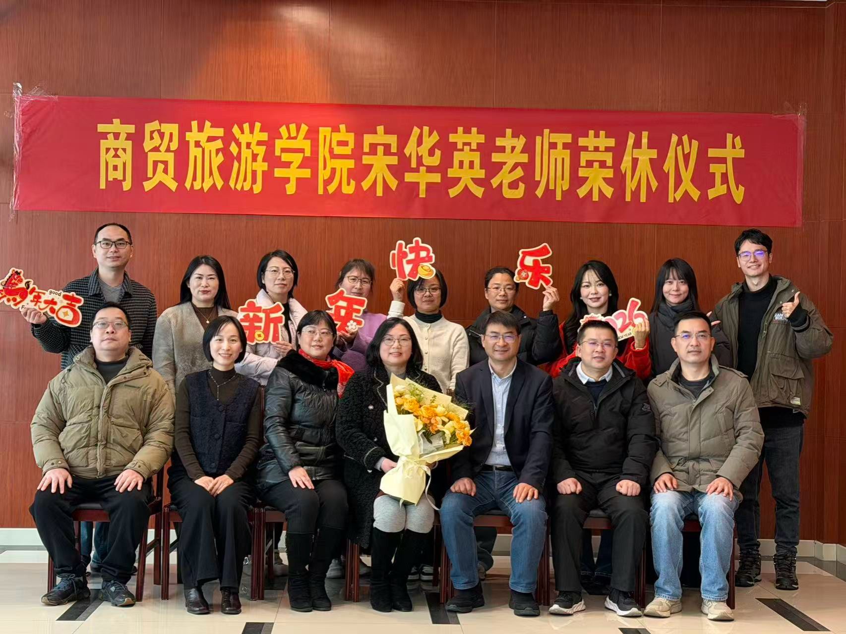 1月7日中午,商贸旅游学院为宋华英老师举行了一场温馨的荣休仪式。联系校领导、校纪委书记沈阳红,学院领导班子成员及全体教职工齐聚一堂,共同为宋华英老师送上荣休祝福,共忆从教岁月,共话教育情怀。