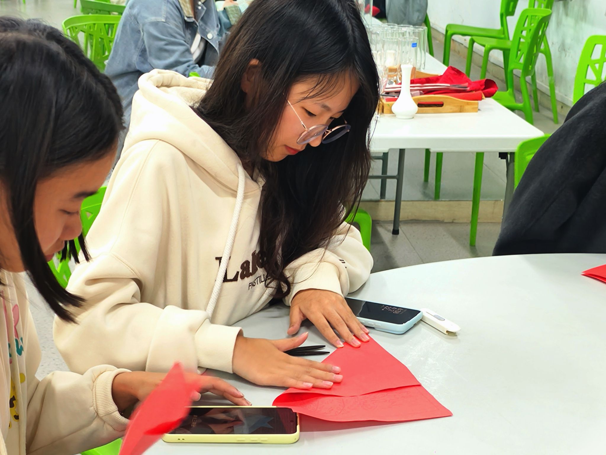 一纸一剪藏春意,非遗巧手寄情思。为传承中华优秀传统文化,让同学们沉浸式感受清明节令的氛围,商贸旅游学院圆心舍于4月2日在8610教室开展“裁春纸 念清明”主题活动,以红纸为媒、剪刀为笔,让传统技艺在校园里散发出春天的气息。