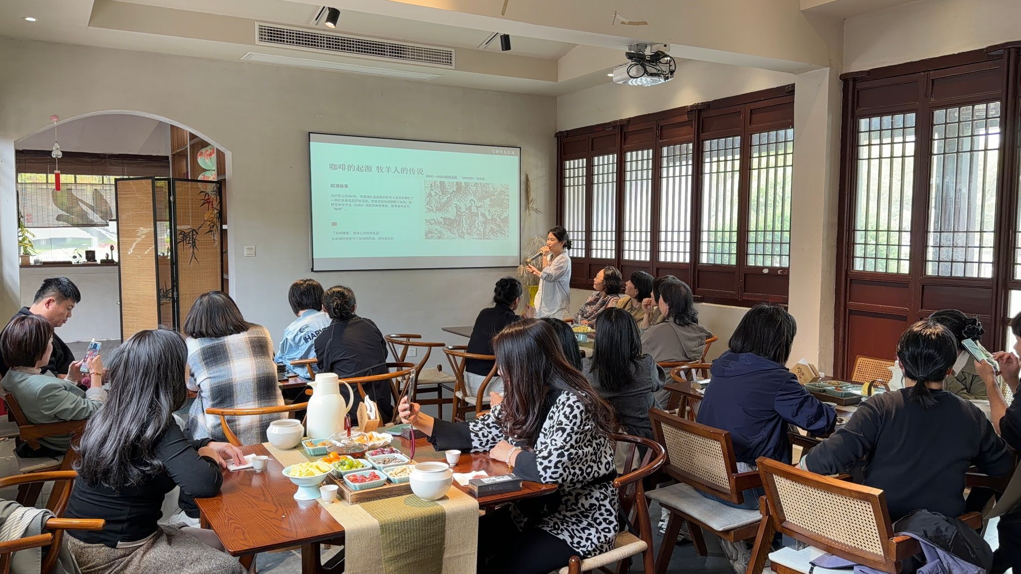 会员们三五成群,围坐在桌前,共同品饮明前龙井、陈皮白茶、云南普洱等不同茶品,细辨其不同的鲜香风味。现场笑声不断,拍照打卡频频。在互动环节,协会还特邀茶室主理人现场讲解茶咖知识,分享品鉴技巧和经验,讲解深入浅出,大家都感到收获不少。