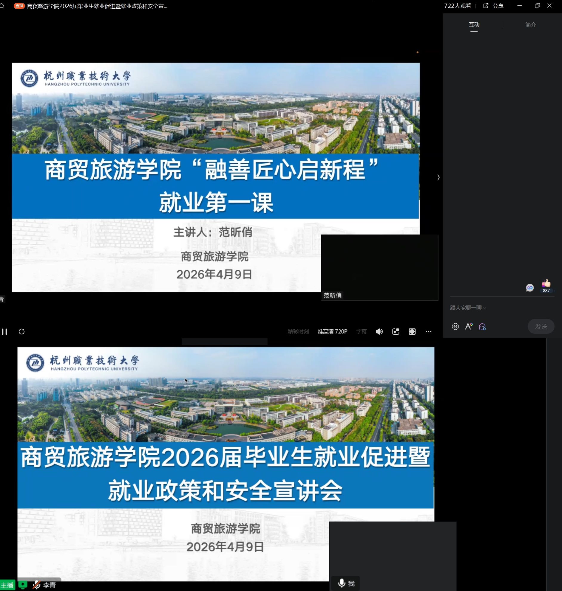 王晓磊则结合历年学生案例,开展安全宣讲,围绕就业求职安全、校内外住宿安全、交通出行安全、意识形态安全,防范诈骗、个人信息保护等进行再次强调和提醒;李青从就业关键词,分享了就业协议网签流程、就业创业政策等方面的内容,帮助学生扫除求职盲区。