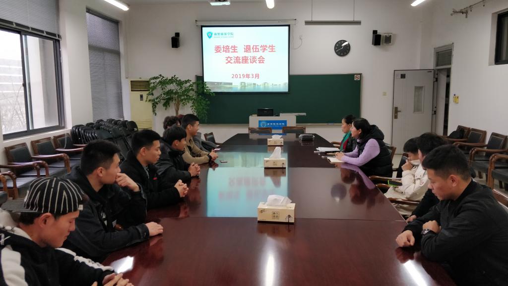 3月5日,商贸旅游学院在8318会议室与委培生、退伍学生开展座谈。分院学工办主任、年级辅导员、全体在校委培生、退伍学生出席参加。