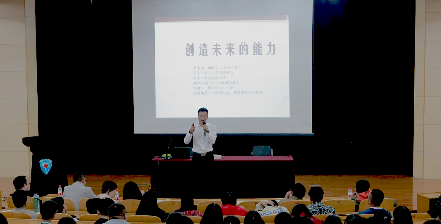 2018年10月24日,创新创业大讲堂第三十六讲在行政楼二楼报告厅举行。本次大讲堂主讲嘉宾是我校校企合作单位圣奥集团人力资源总监尹志远,主题为“创造未来的能力”。