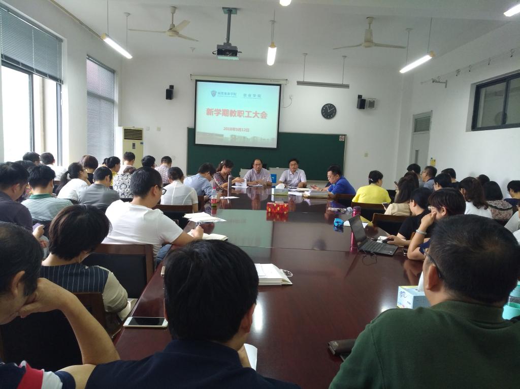 9月12日下午,商贸旅游学院、创业学院新学期教职工大会在8318会议室召开,分院院长张赵根、党总支书记姜萌、副院长戴凤微、创业学院副院长张理剑和全体教职工参加大会。会议由戴凤微主持。