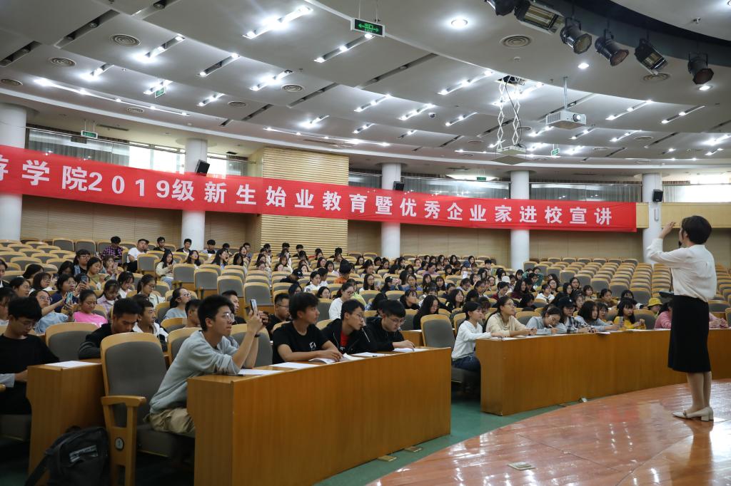 10月23日下午,商贸旅游学院会计专业在行政楼二楼报告厅召开2019级会计专业始业教育暨优秀企业家进校宣讲会,会计专业负责人施卓晨和企业嘉宾赵磊女士做始业教育宣讲,本次会议由施卓晨老师主持,专任教师兼班主任杨娟、王盛、朱莲琴及2019级会计专业四个班的新生参加会议。