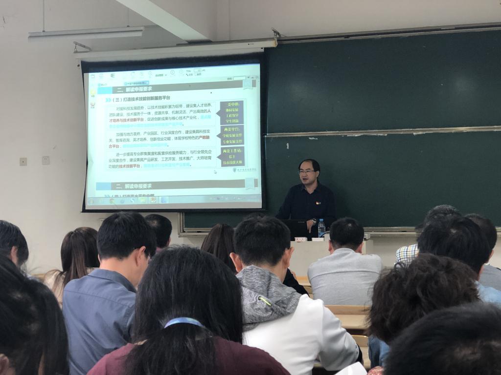 为进一步推进“不忘初心、牢记使命”主题教育深入开展,10月23日下午,商贸旅游学院、创业学院在8202教室开展“不忘初心、牢记使命”主题教育专题学习活动,分院院长张赵根讲授题为《牢记初心使命,勇于担当作为,为加快建设中国特色、世界水平高职院校而努力奋斗》的专题党课,全体教职工参加学习。党课由党总支书记姜萌主持。