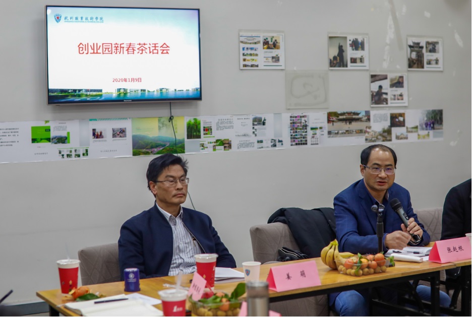 张赵根院长向各企业负责人传达了我校获评“双高”校的好消息,希望各园区企业跟学校一起快速发展,更上一层楼。同时,他希望创业园企业平时加强沟通交流、同伴互助,业务上相互照顾,有困难一起解决,大家一起在创业路上温暖前行。