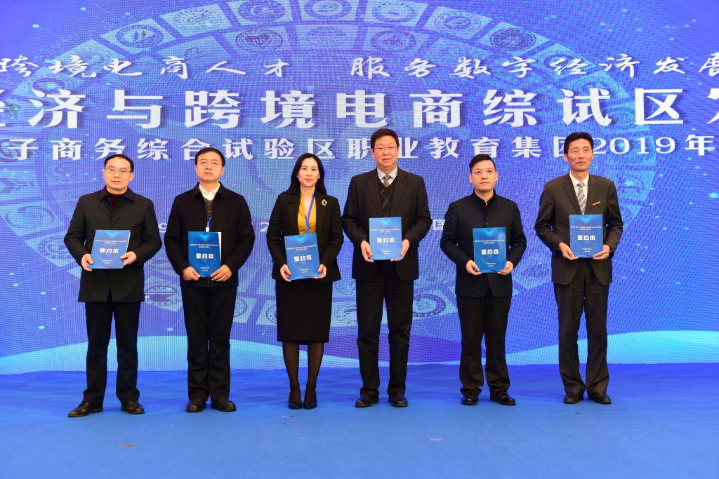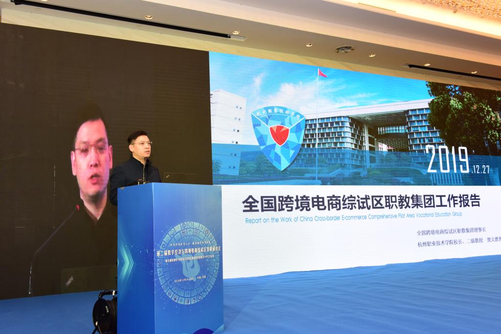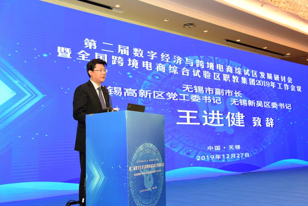 12月26日至28日,第二届数字经济与跨境电商综试区发展研讨会暨全国跨境电商综试区职教集团2019年工作会议在无锡成功举办。本次会议由全国电子商务职业教育教学指导委员会、中国(无锡)跨境电子商务综合试验区建设领导小组办公室共同指导,全国跨境电商综试区职教集团主办,我校和无锡科技职业学院共同承办。全国电子商务职业教育教学指导委员会副主任张宝忠、副秘书长王春燕,无锡市副市长、无锡高新区党工委书记、无锡新吴区委书记王进健,无锡科技职业学院党委书记张国华、校长孙兴洋,浙江省电子商务促进会会长卢成南,朴茨茅斯大学海外学习计划授权中心负责人Alice Yu女士,北京博导前程信息技术股份有限公司董事长段建等相关领导以及来自全国88所本科、职业院校和行业企业的160余位专家学者出席了会议。全国跨境电商综试区职教集团理事长、我校校长贾文胜,副校长陈加明及商贸旅游学院负责人、电子商务专业相关教师参加了会议。