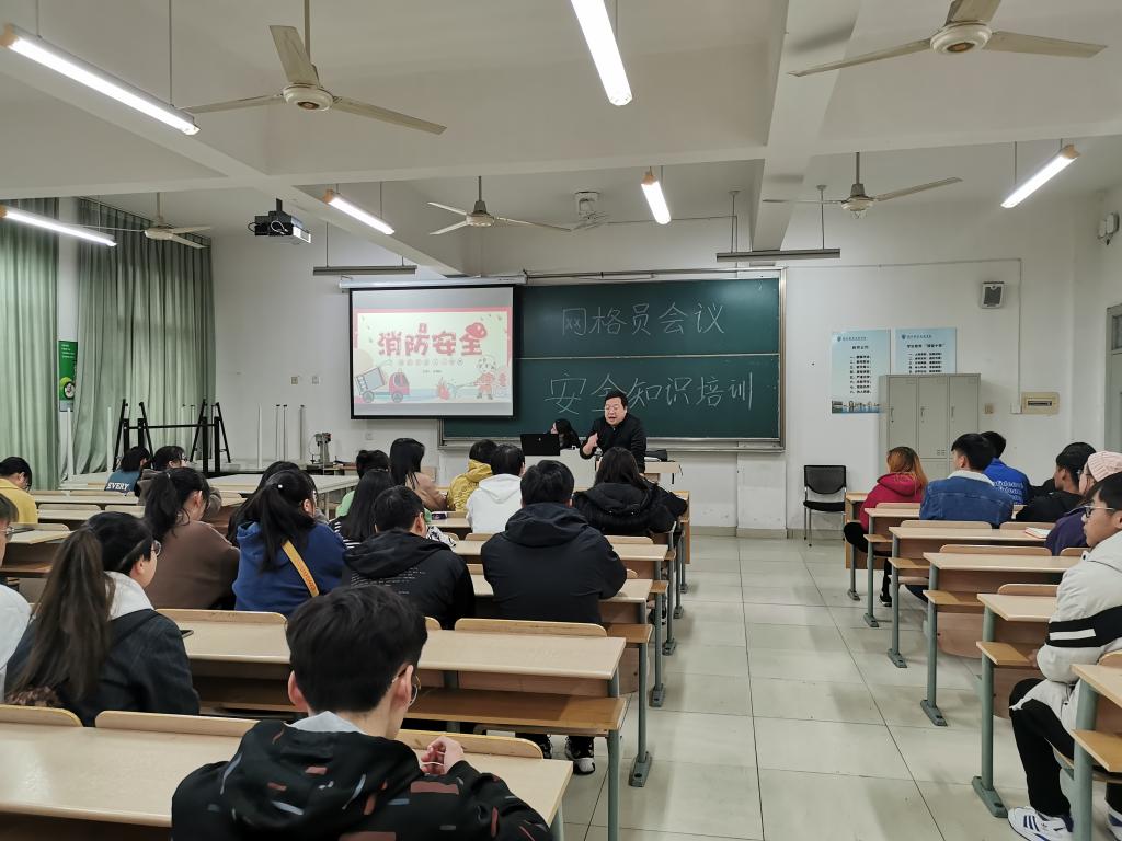 随后,分院对全体网格员开展消防知识培训,通过讲解校园消防案例,观看消防知识视频,向大家普及逃生技巧和灭火器的使用方法,以此提高在座学生的消防安全意识和知识技能。