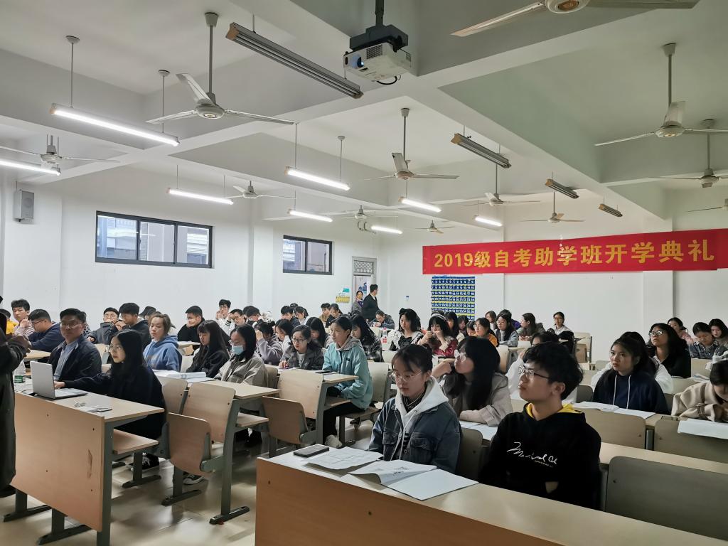 杨波老师代表自考助学平台主考学校发言,他介绍了学校的办学情况,分析当前自考助学的优势,希望全体学生养成良好的学习习惯,树立明确的学习目标,以更高的要求时刻鞭策自己。