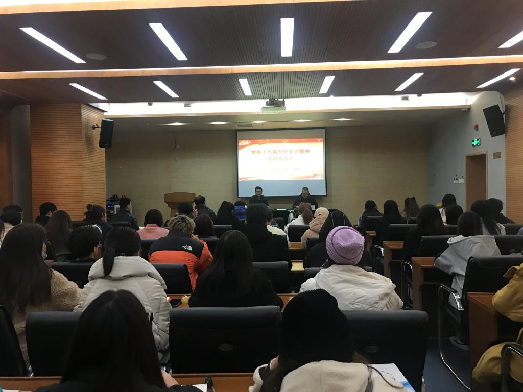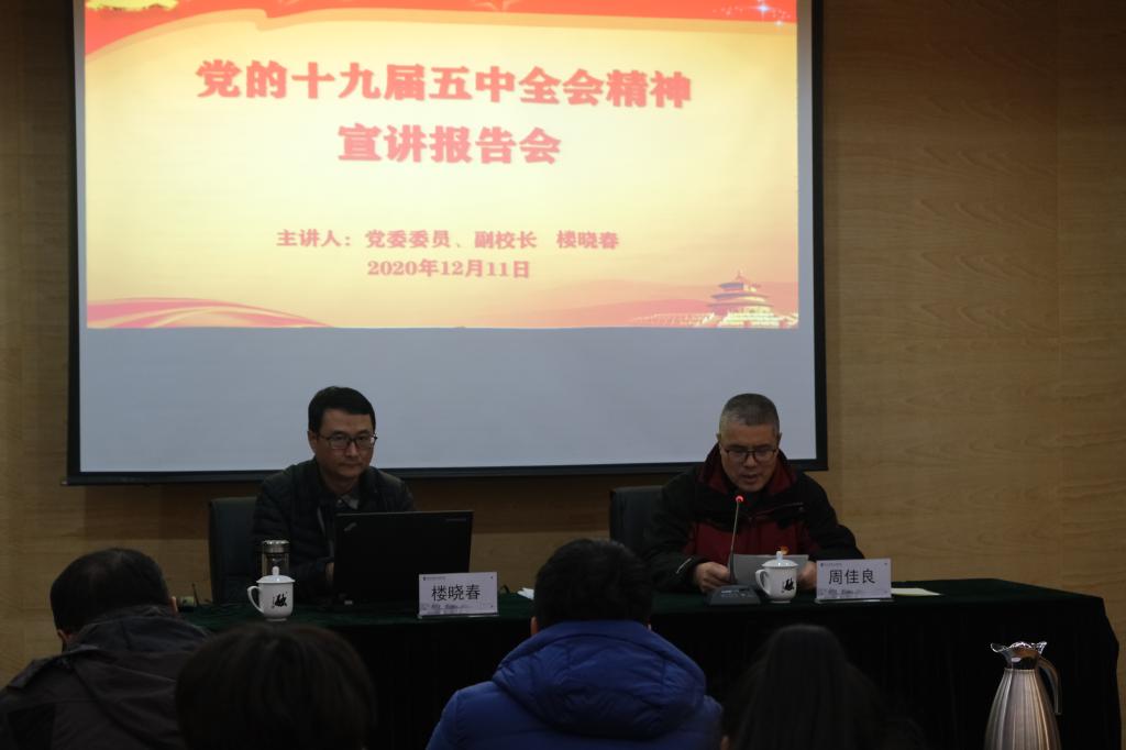 为深入学习宣传贯彻党的十九届五中全会精神,引导师生把思想和行动统一到全会精神上来,12月11日晚,校党委委员、副校长楼晓春深入商贸旅游学院宣讲党的十九届五中全会精神。商贸旅游学院班子成员,全体科级干部、辅导员,学团干部和团支书代表参加会议,会议由党总支副书记周佳良主持。