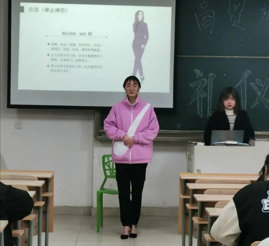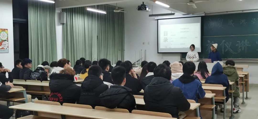 为做好“文明修身”活动,大力弘扬“尊师、明礼、爱校”的校园文化氛围,12月7日晚18点,商贸旅游学院礼仪晚学堂在8202教室开讲。