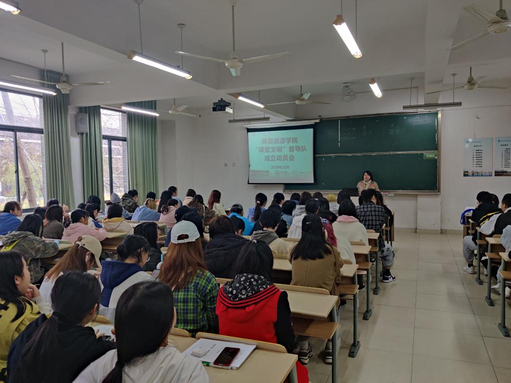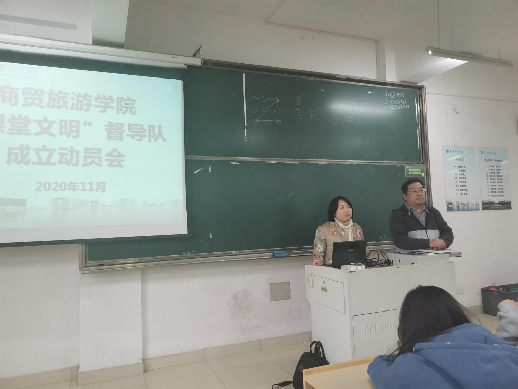 课堂是学习知识技能、培育优良学风、文明立德修身的重要场所,为进一步深化商贸“课堂文明”建设,11月23日中午,商贸旅游学院在8202教室举行“课堂文明”督导队伍成立动员会,分院学工办王晓磊、组织员白秀珍及督导队成员参加会议。