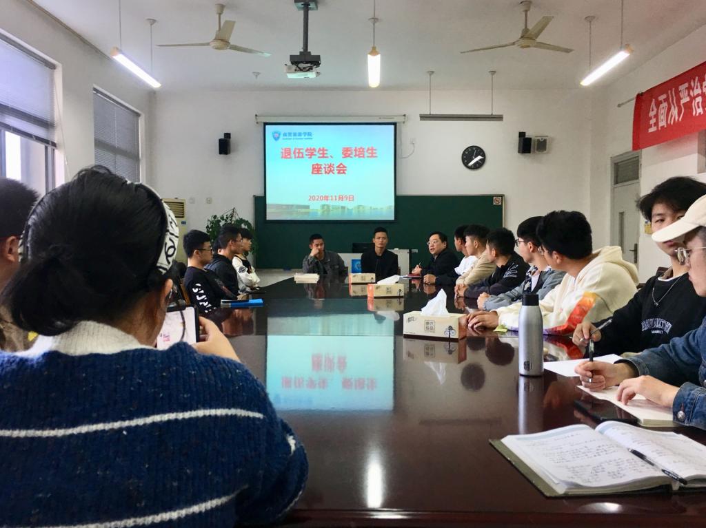 为切实关心退伍学生,促进文明、夯实学风、提供帮助,11月9日,商贸旅游学院在8318会议室与退伍生开展座谈。分院学工办主任、年级辅导员、全体在校退伍学生参加。