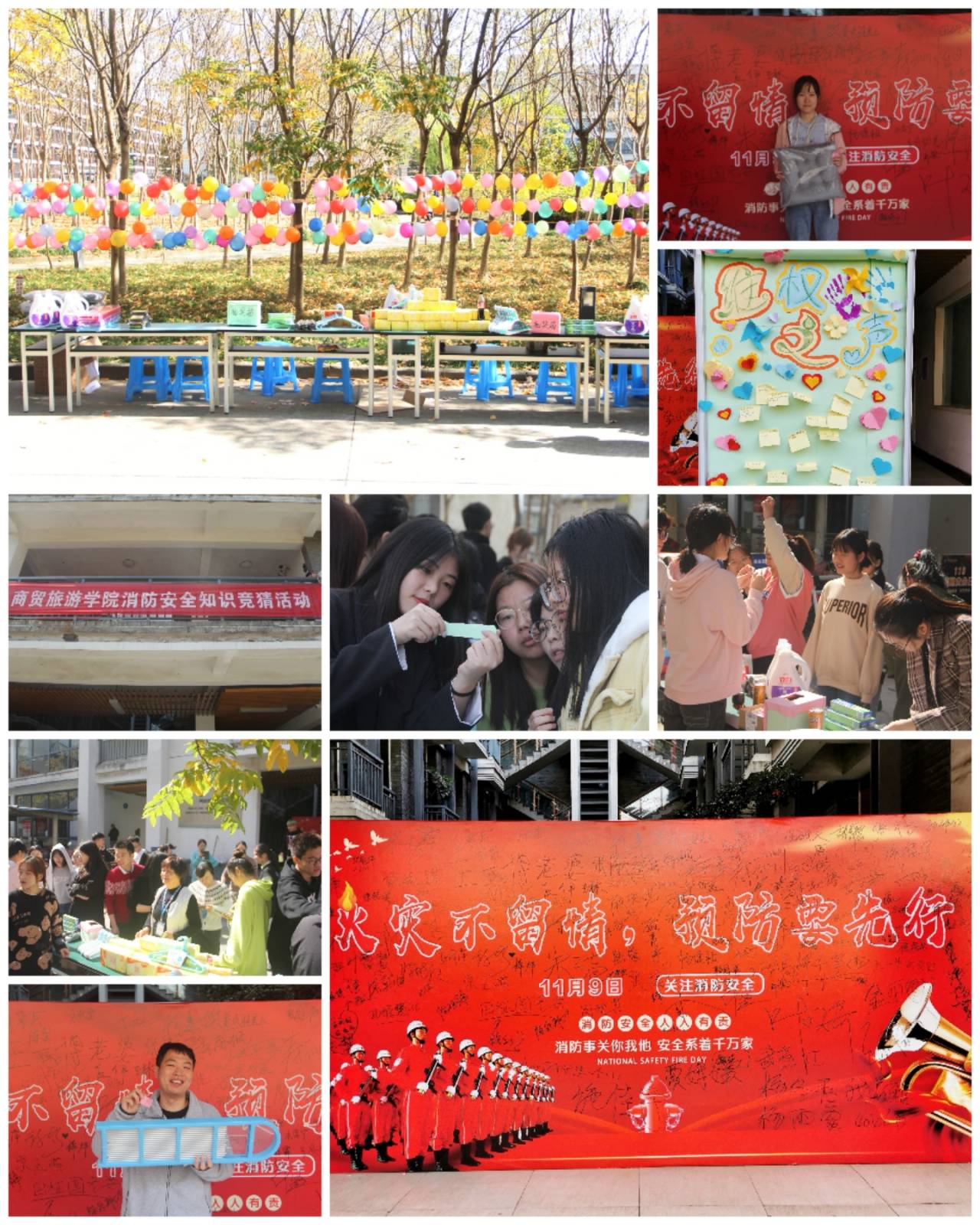 “火善用之则为福,不善用之则为祸。”为积极响应119消防宣传月号召,加强分院学生公寓消防安全和文明管理,提升同学们的消防安全意识与技能。11月9日中午,商贸旅游学院学生公寓管理服务中心举办的消防安全和公寓文明知识竞猜活动在八号楼一楼空地如约举行。