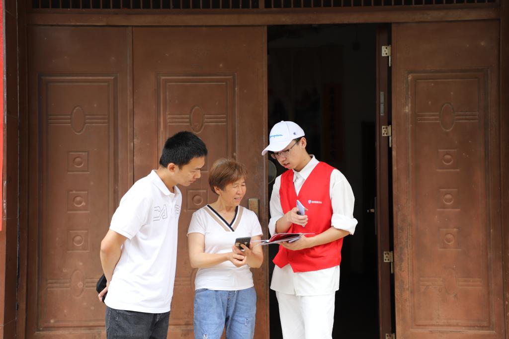小分队先后走访了桥西村、显后村、瑶村村、左口村、龙源庄村和塘边村6个村落,在村干部的带领下,师生参观了村里的文化礼堂,拜访了村里的老党员,了解了当地的民风民俗。随后,师生小分队又深入村落、走访村民,分发精心制作的视频号操作手册。同学们以通俗易懂的语言一对一为村民讲解视频号如何注册、如何拍摄以及如何进行简单剪辑处理并发布。讲解结束后,村民们兴趣浓厚,尝试拍摄。有的村民顺手记录下家人在农田中劳作的场景;有的村民拍下村落周围的绿水青山;还有的村民将小队成员与现场小朋友玩耍视频发布到微信视频号中……中途,一位老爷爷开心地说:“学会拍摄后,就可以让外地的女儿经常看到孙女的成长过程了。”在走访自然村落的过程中,同学们纷纷赞叹浙江村落的美丽。有的同学走到农田间和村民一起耕田劳作,有的同学与乘凉的爷爷奶奶交谈村落变化,有的同学将乡村美景记录在视频号中。