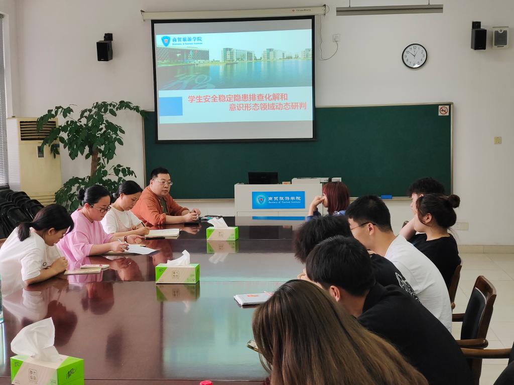 5月18日中午,商贸旅游学院在8318会议室召开平安校园和文明建设专题会暨思政研判会议。分院学工办王晓磊、李志强、陈伶伶、陈玉燕及2019、2020级班长参加会议。