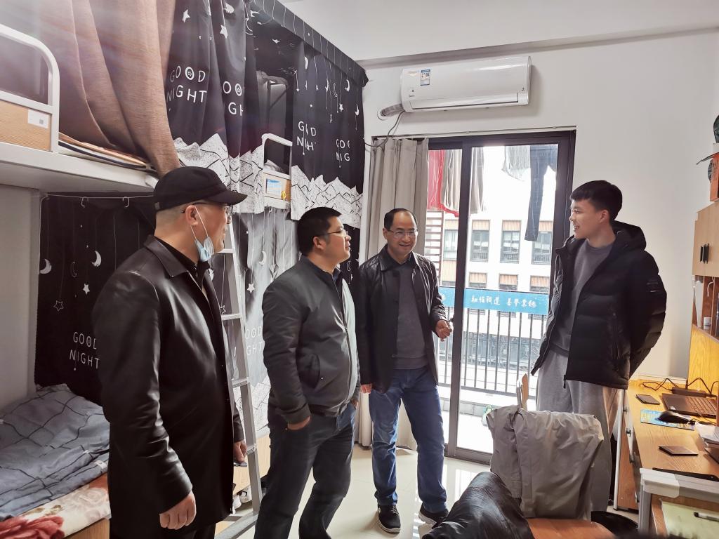 2月28日,我院迎来了学生正式返校的日子,为深入了解学生返校后的学习生活情况和需求,商贸旅游学院党总支书记、院长张赵根、副书记周佳良、副院长袁江军一行深入学生寝室,看望学生,送上分院的关心和问候。